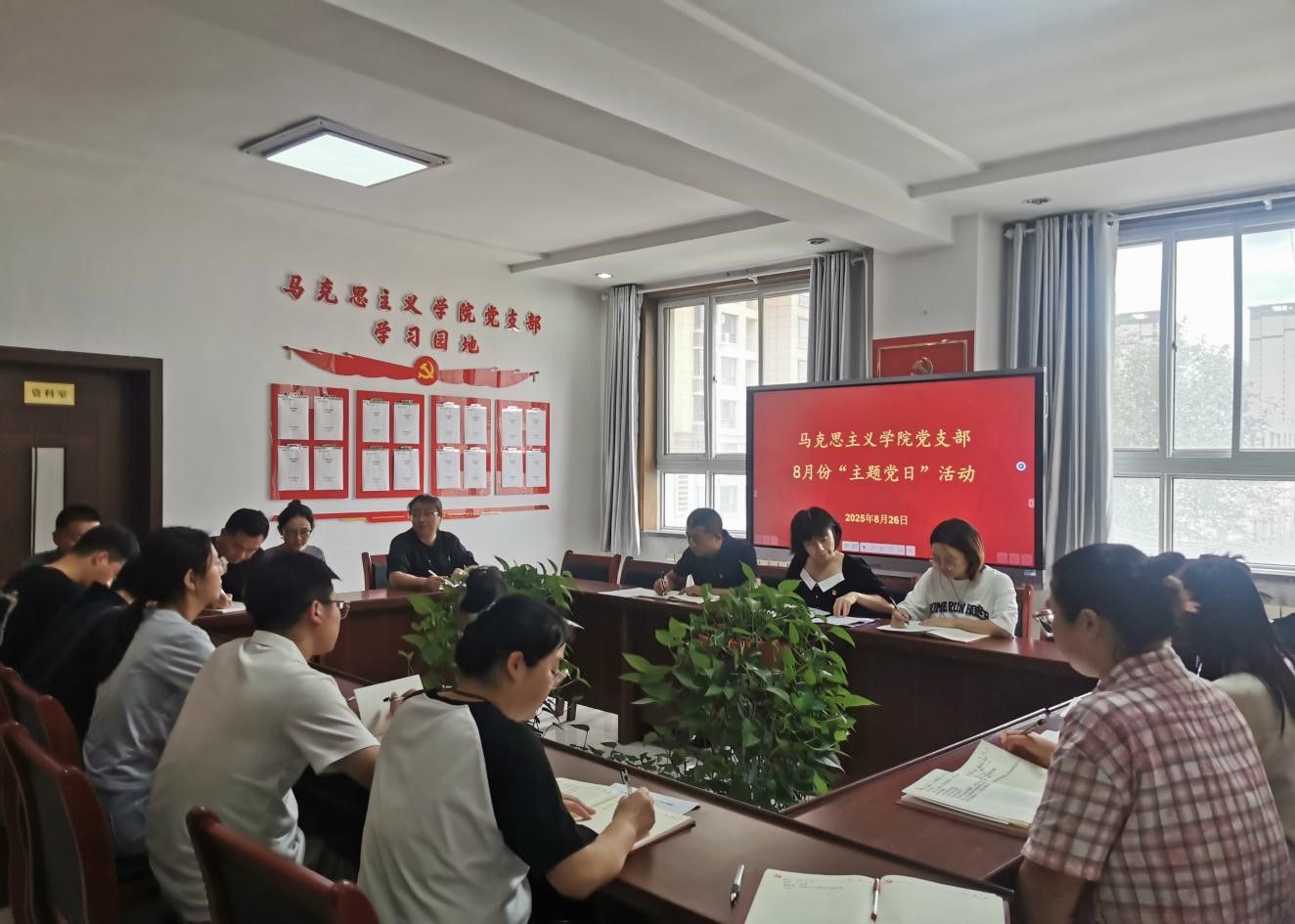 为进一步加强思想建设,提升党员政治素养和纪律意识,8月26日下午,马克思主义学院党支部在立德楼208会议室开展八月主题党日活动。活动由支部书记吴敏主持,支部全体党员参加。